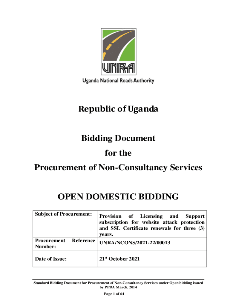 Get the free Republic of Uganda Bidding Document for the Procurement of ...