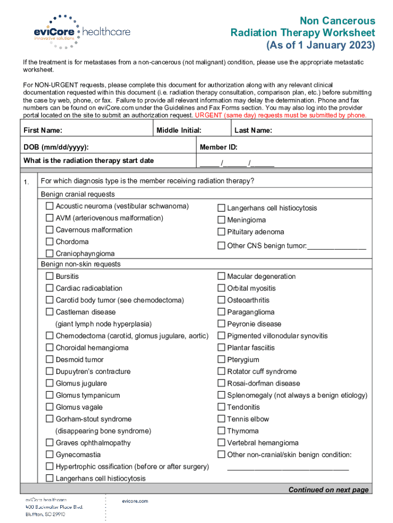 Non-Cancerous Radiation Therapy Worksheet (As of 1 January 2023) If the treatment is for metastases from a noncancerous (not malignant) condition, please use the appropriate metastatic worksheet.