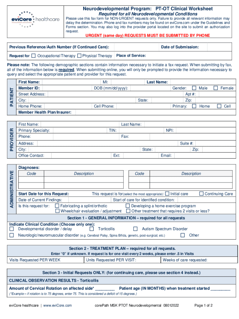 Neurodevelopmental Program: PLOT Clinical Worksheet Required for all Neurodevelopmental Conditions Please use this fax form for MONUMENT requests only. Failure to provide all relevant information