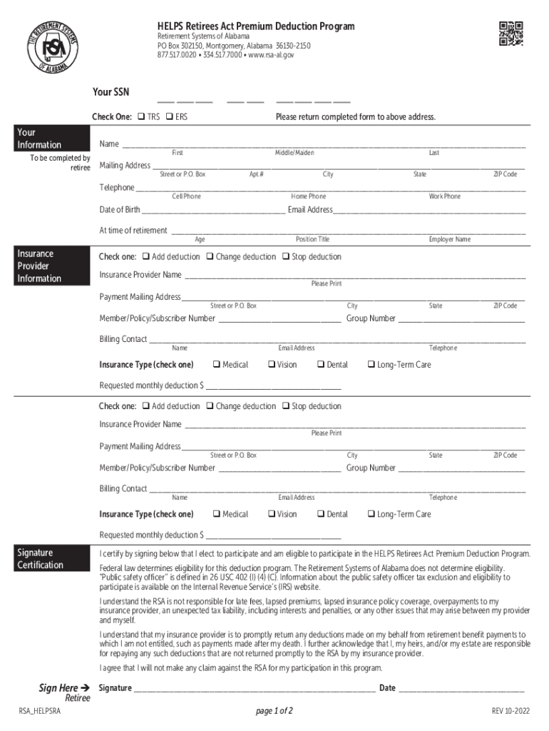 Helps Retirees Act Premium is not the form you're looking for?Search for another form here.