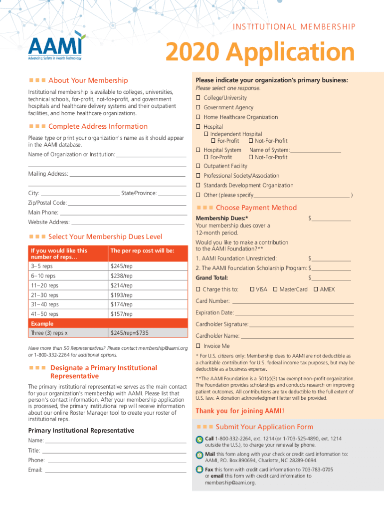 INSTITUTIONAL MEMBERSHIP2020 Application About Your Membership Institutional membership is available to colleges, universities, technical schools, for profit, notforprofit, and government hospitals