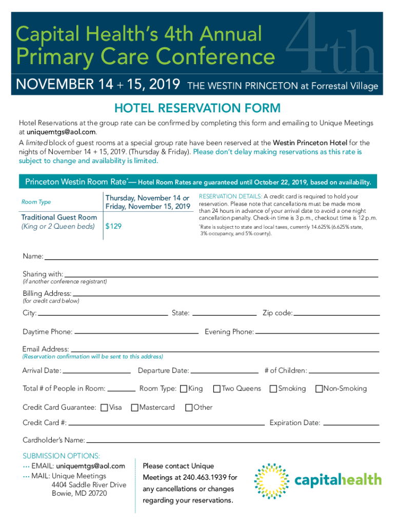Anyone who is planning to stay at the Westin Princeton hotel needs to fill out the form in order to make a reservation and provide necessary information for their stay.