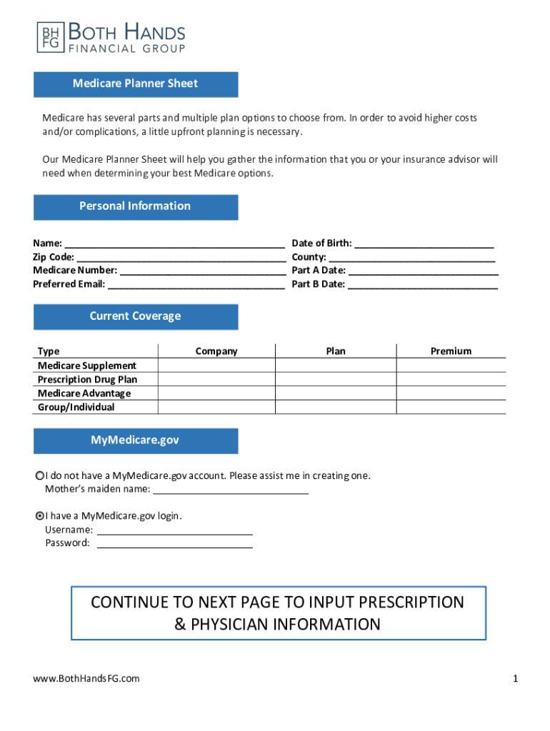 Get the free Medicare Planner Sheet Personal Information - Twenty Over Ten