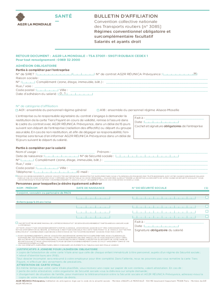 All employees who are eligible for health insurance coverage through AG2R La Mondiale are required to file the bulletin d'affiliation santé- AG2R.