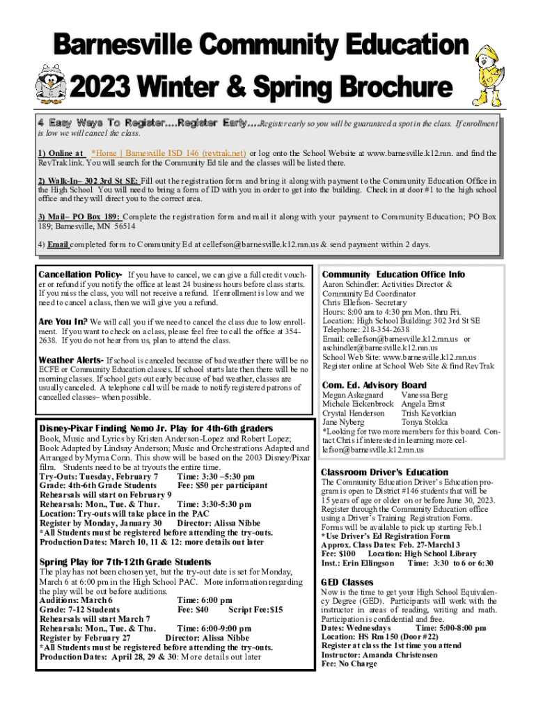 is low we will cancel the class.1) Online at *Home | Barnesville ISD 146 (several.net)
