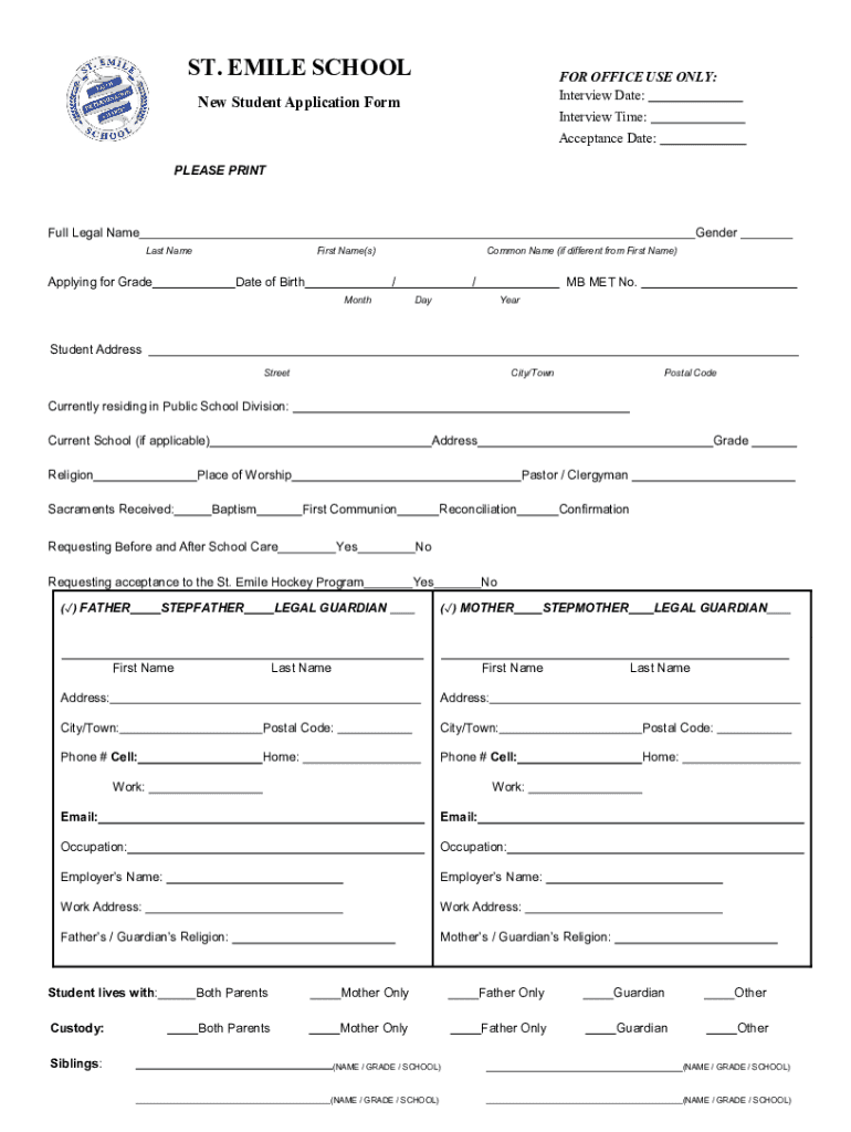 ST. EMILE SCHOOLBOY OFFICE USE ONLY: