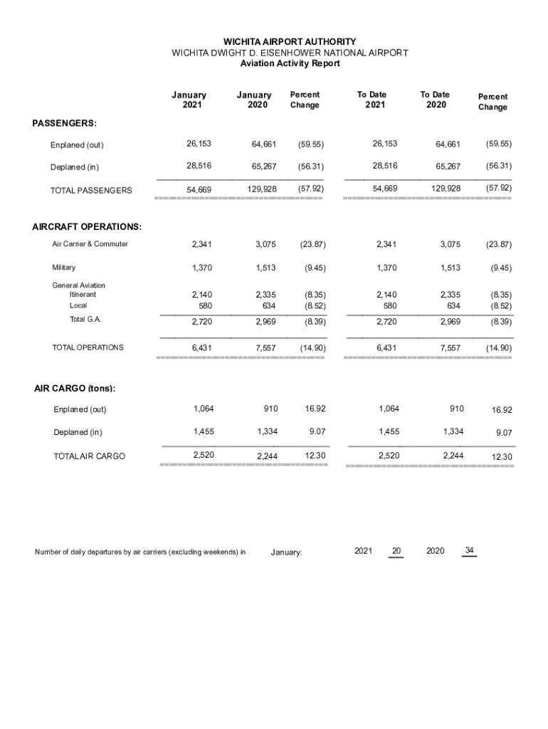 WICHITA AIRPORT AUTHORITY WICHITA DWIGHT D. EISENHOWER NATIONAL AIRPORT Aviation Activity Report January 2021January 2020Percent Change Date Date2021Percent Change2020PASSENGERS: Enplaned (out) Deplaned