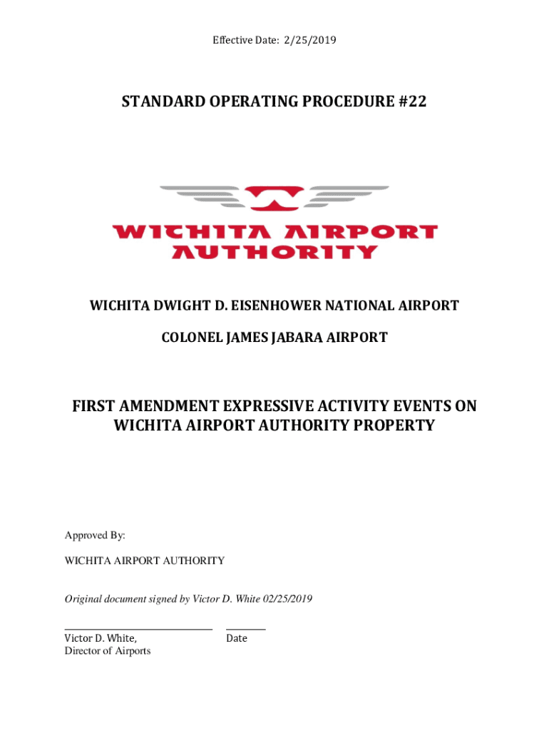 Effective Date: 2/25/2019STANDARD OPERATING PROCEDURE #22WICHITA DWIGHT D. EISENHOWER NATIONAL AIRPORT COLONEL JAMES BARBARA AIRPORTFIRST AMENDMENT EXPRESSIVE ACTIVITY EVENTS ON WICHITA AIRPORT AUTHORITY