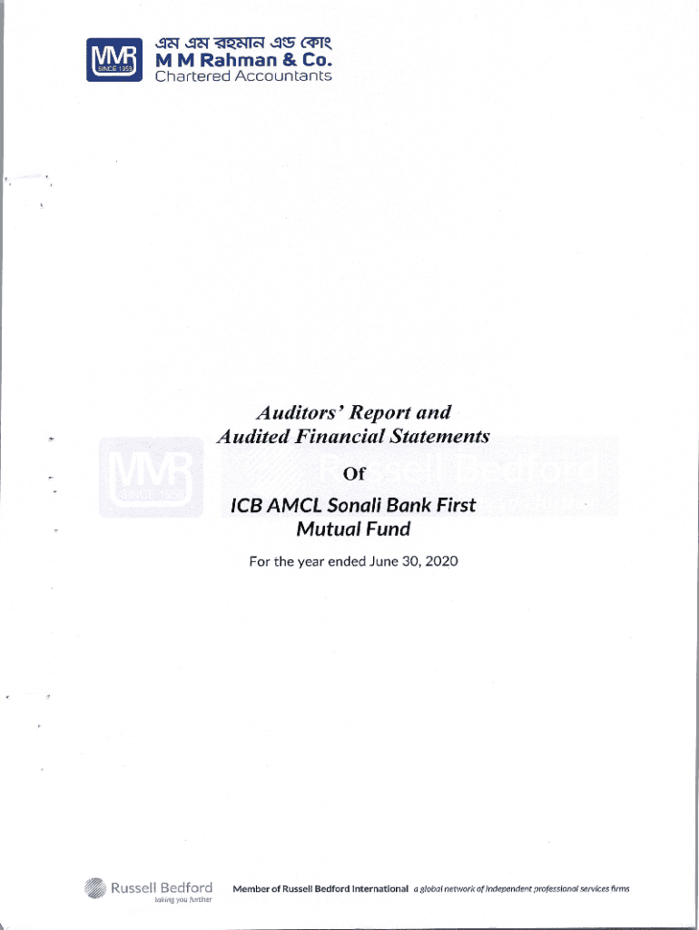 !!tcNlc1 5(!STM M Rahman & Co. Chartered AccountantsAuditors\' Report and Audited Financial Statements Of ICB MCL Sonali Bank First Mutual Fund For the year ended June 30, 2020eRusse 11 Bedford taking