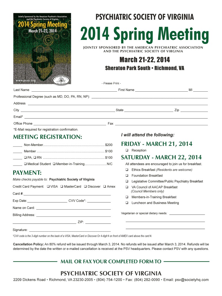 Get the free 2014 Spring Meeting - Psychiatric Society of Virginia - psva
