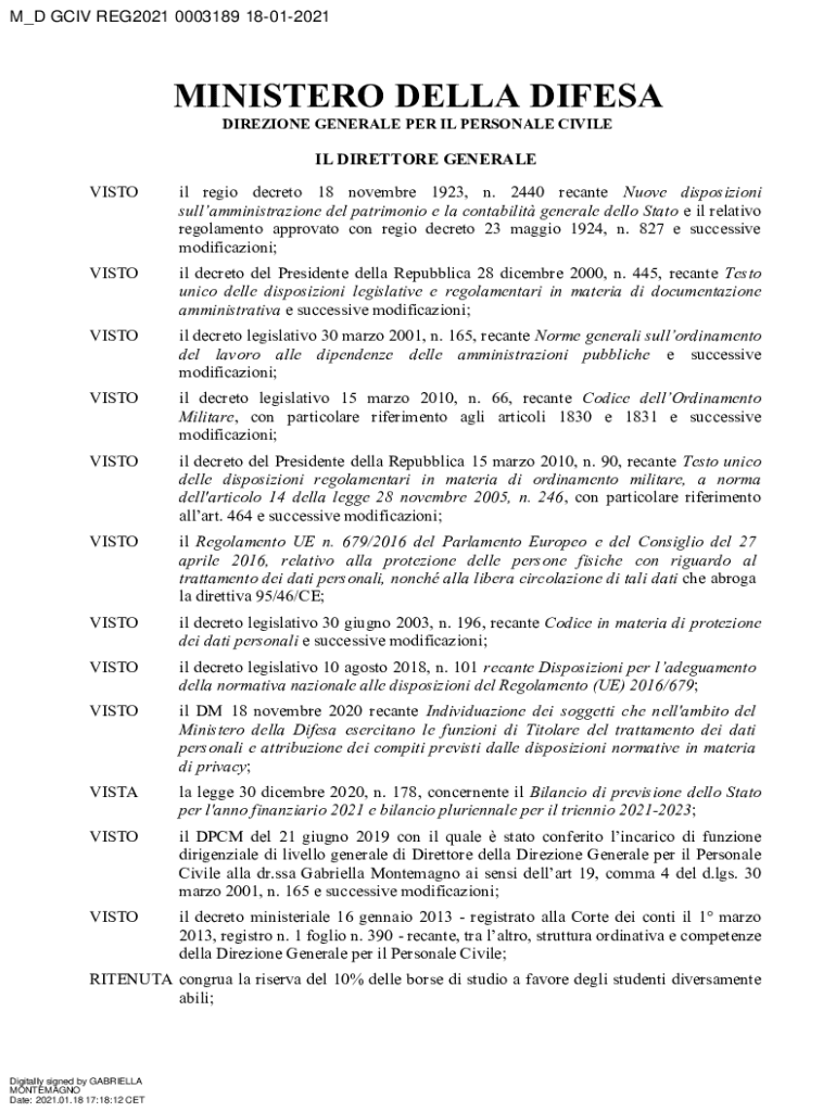 M_D GCIV REG2021 0003189 18012021MINISTERO DELLA DIF ESA