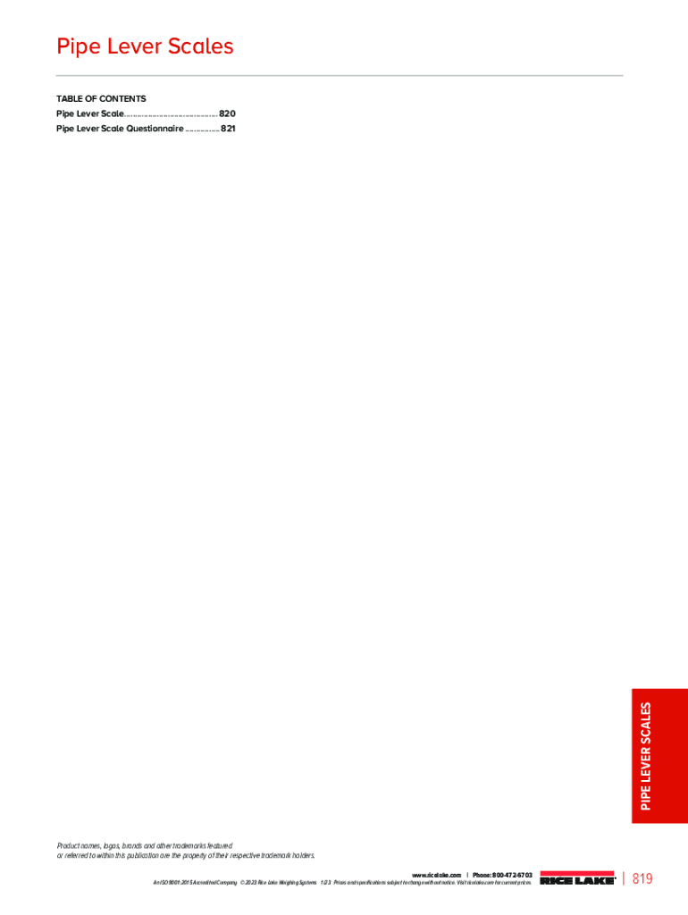 Pipe Lever Scales TABLE OF CONTENTS Pipe Lever Scale............................................ 820PIPE LEVER SCALESPipe Lever Scale Questionnaire................. 821Product names, logos, brands