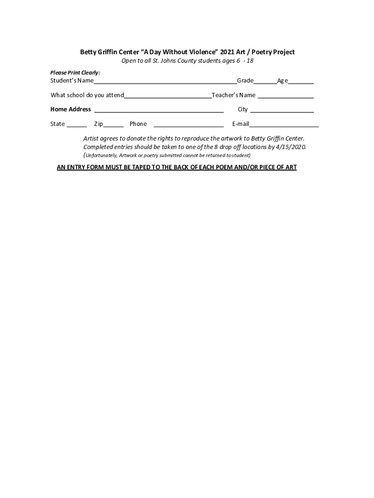 Betty Griffin Center A Day Without Violence 2021 Art / Poetry Project