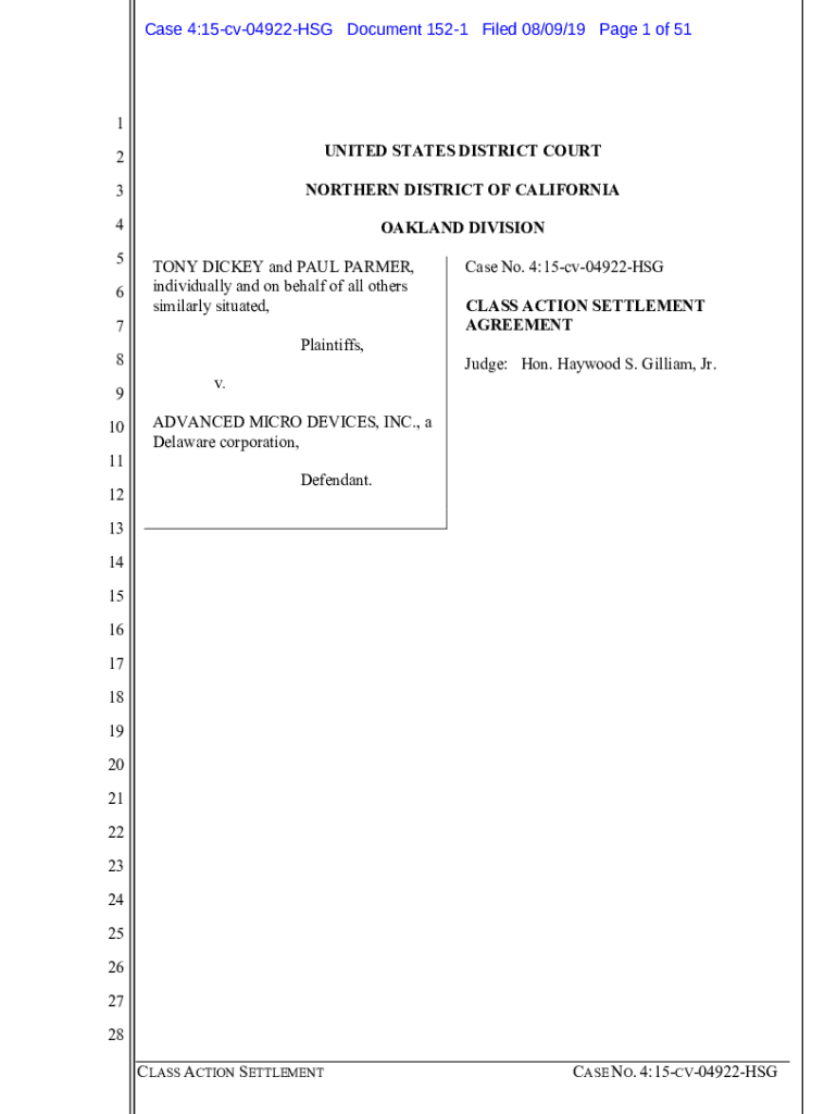 Case 4:15cv04922HSG Document 1521 Filed 08/09/19-Page 1 of 511 2UNITED STATES DISTRICT COURT3NORTHERN DISTRICT OF CALIFORNIA4OAKLAND DIVISION5 6TONY DICKEY and PAUL PARKER, individually and on behalf