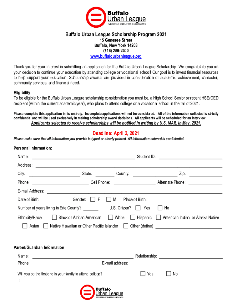 Buffalo Urban League Scholarship is not the form you're looking for?Search for another form here.