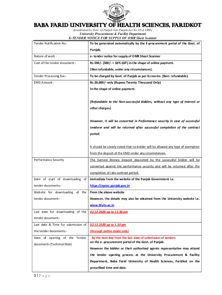 (Established by Govt. of Punjab vide Punjab Act No 18 of 1998)University Procurement & Facility Department TENDER NOTICE FOR SUPPLY OF OMR Sheet Scanner Tender Notification No :To be generated automatically