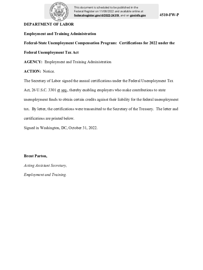 This document is scheduled to be published in the Federal Register on 11/08/2022 and available online at Billing federalregister.gov/d/202224319, and on gov info. Goode: 4510FWPDEPARTMENT OF LABOR