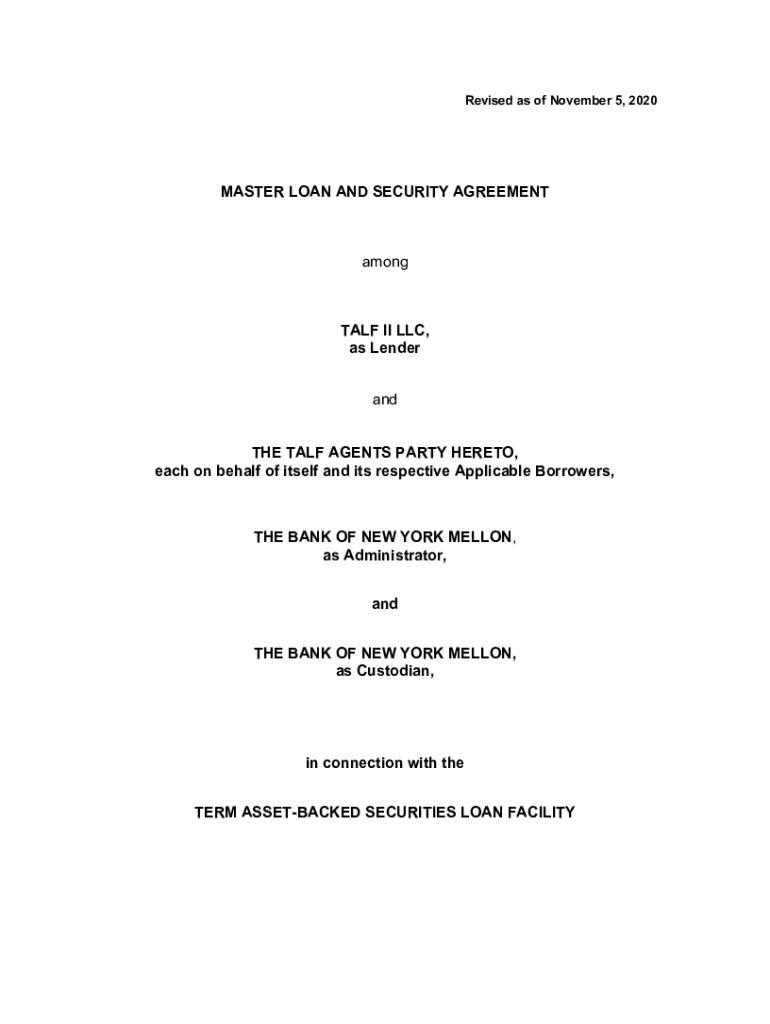 Revised as of November 5, 2020MASTER LOAN AND SECURITY AGREEMENTamongTALF II LLC,