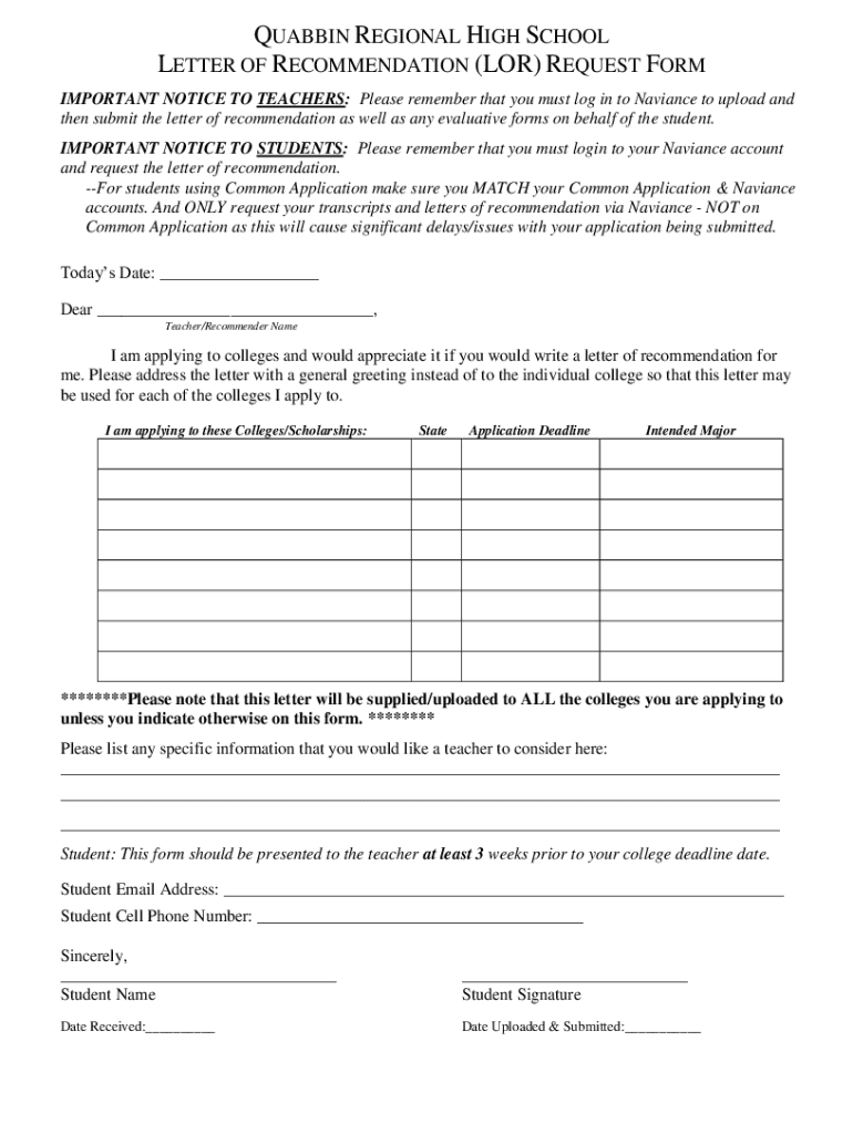 DUBBIN REGIONAL HIGH SCHOOL LETTER OF RECOMMENDATION (FOR) REQUEST FORM IMPORTANT NOTICE TO TEACHERS: Please remember that you must log in to Variance to upload and then submit the letter of recommendation