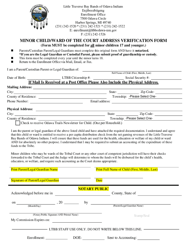 Little Traverse Bay Bands of Data Indians Enjiboozbiigeng Enrollment Office 7500 Data Circle Harbor Springs, MI 49740 (231) 2421520 * (231) 2421521 * (231) 2421522 E: enrollment@ltbbodawansn.gov F: