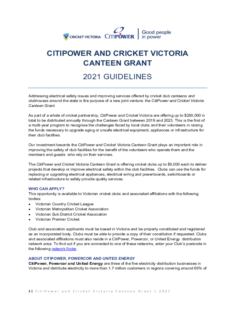 Get the free New Round of Canteen Grants Open for Cricket Clubs