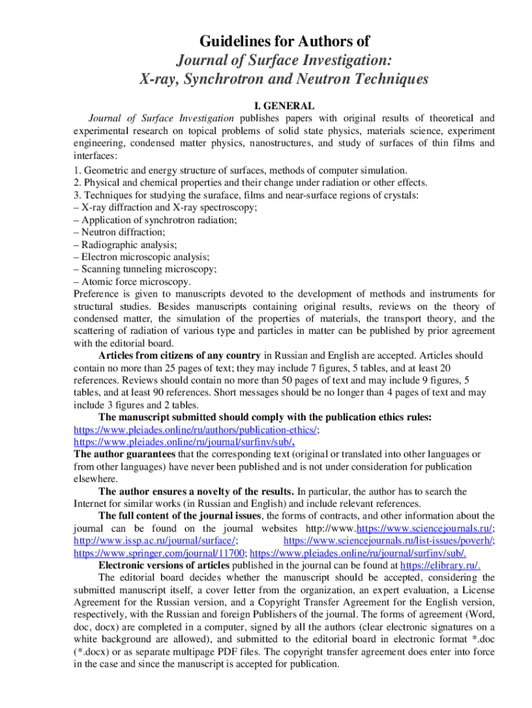 Get the free Guidelines for Authors of Journal of Surface Investigation