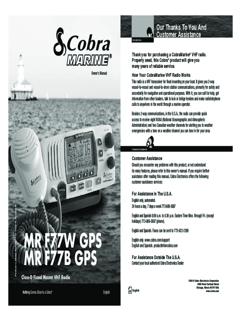 Customer AssistanceThank you for purchasing a Cobra Marine VHF radio.