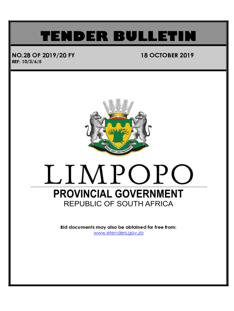 Get the free LIMPOPO PROVINCIAL TENDER BULLETIN NO 28 OF 2019/20 FY, 18 OCTOBER 2019
