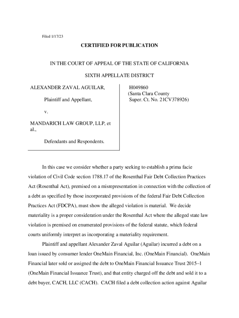Get the free Aguilar v. Mandarich Law Group, LLP