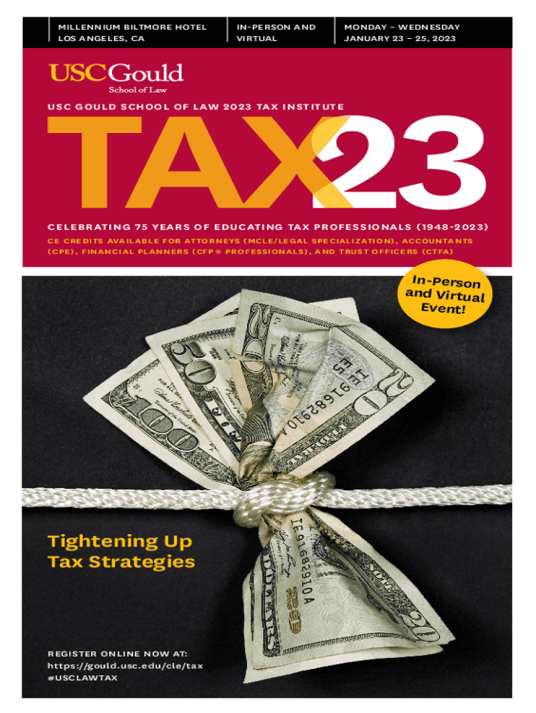 MILLENNIUM BILTMORE HOTEL LOS ANGELES, CHAIRPERSON AND VIRTUALMONDAY WEDNESDAY, JANUARY 23 25, 2023TAX23 USC GOULD SCHOOL OF LAW 2023 TAX INSTITUTECELEBRATING 75 YEARS OF EDUCATING TAX PROFESSIONALS