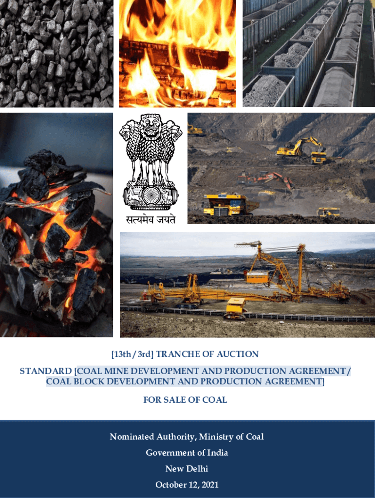 [13th / 3rd] TRANCHE OF AUCTION STANDARD [COAL MINE DEVELOPMENT AND PRODUCTION AGREEMENT / COAL BLOCK DEVELOPMENT AND PRODUCTION AGREEMENT] FOR SALE OF COALNominated Authority, Ministry of Coal Government