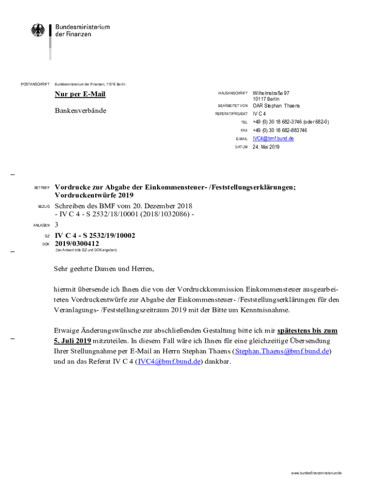 POSTANSCHRIFTBundesministerium her Finance, 11016 Berliner per Email