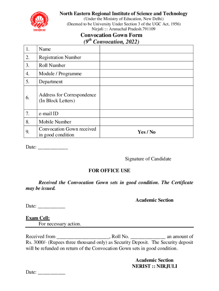 North Eastern Regional Institute of Science and Technology (Under the Ministry of Education, New Delhi) (Deemed to be University Under Section 3 of the UGC Act, 1956) Virgule ::: Arunachal Pradesh.791109Convocation