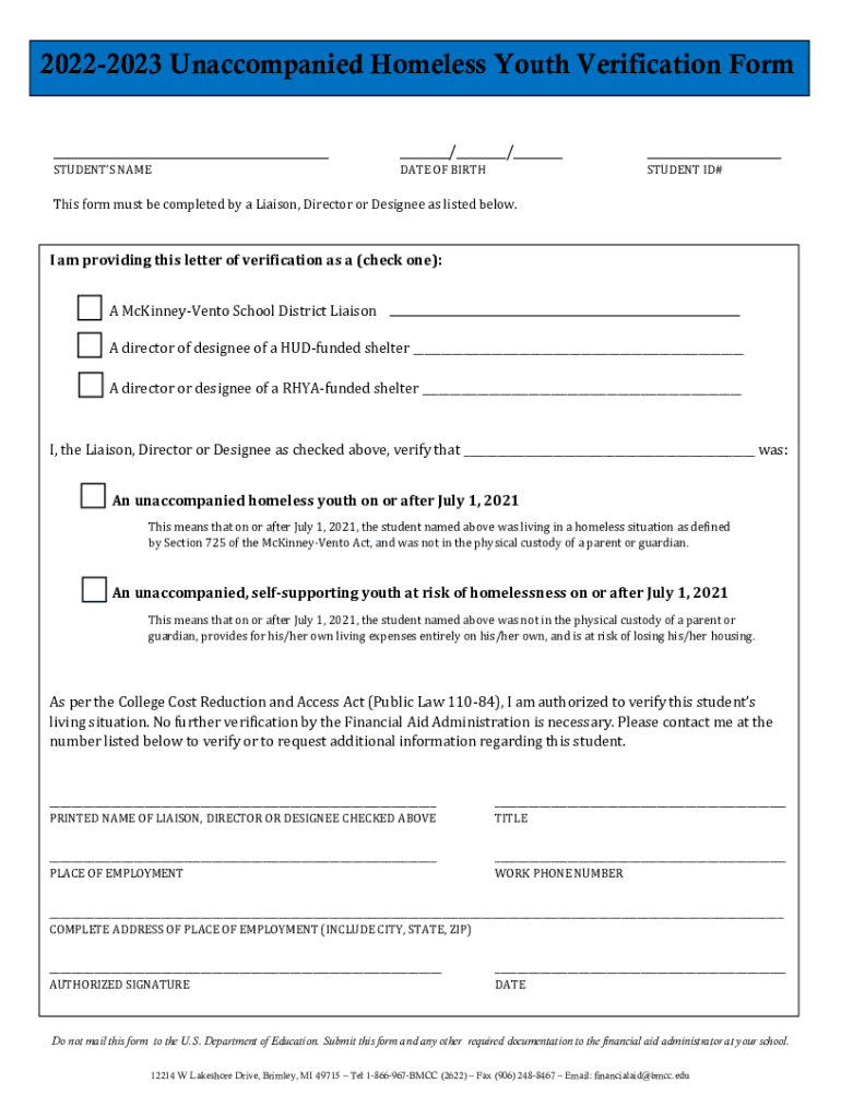Get the free 2022-23 Unaccompanied Homeless Youth Verification Form