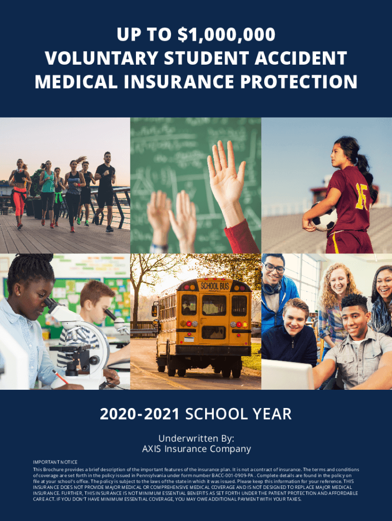 UP TO $1,000,000 VOLUNTARY STUDENT ACCIDENT MEDICAL INSURANCE PROTECTION2020 2021 SCHOOL YEAR Underwritten By: AXIS Insurance Company IMPORTANT NOTICE This Brochure provides a brief description of
