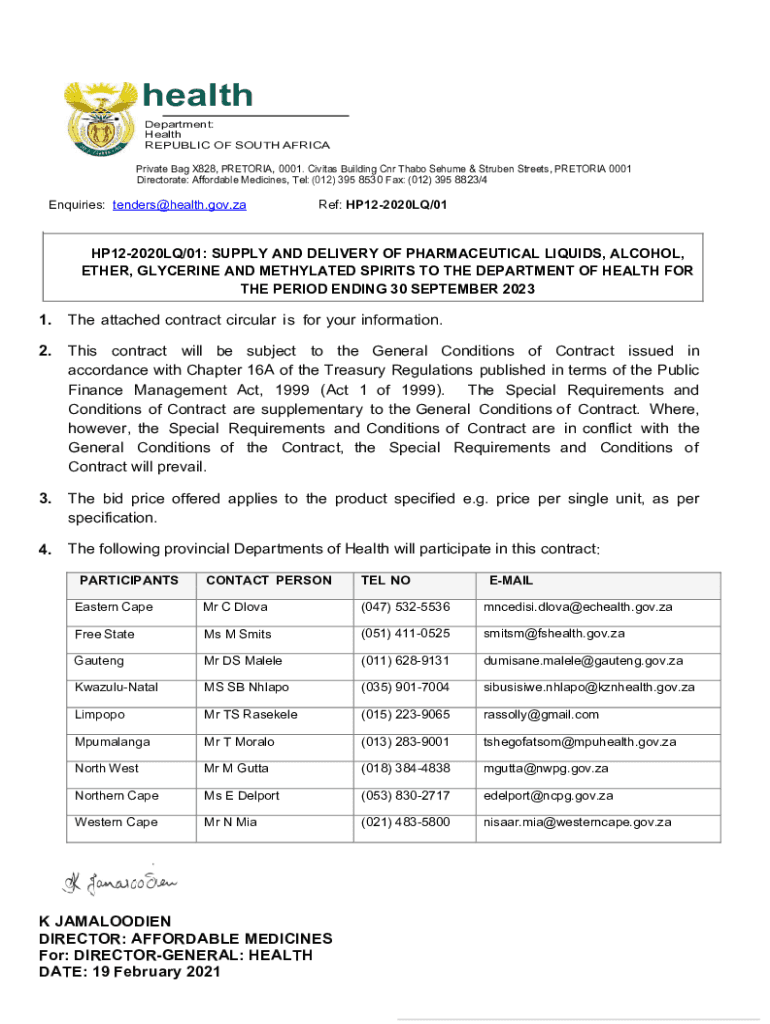 NEW TO THE DEPARTMENT OF HEALTH FOR THE PERIOD 01 OCTOBER 2019 TO 30 SEPTEMBER 2021healthDepartment: Health REPUBLIC OF SOUTH AFRICAPrivate Bag X828, PRETORIA, 0001. Civets Building CNR That Scheme