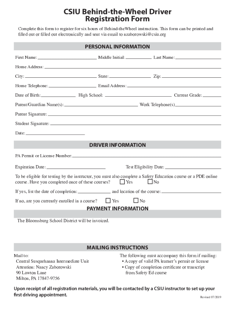 Complete this form to register for six hours of BehindtheWheel instruction. This form can be printed and