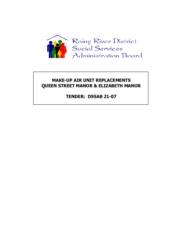 MAKEUP AIR UNIT REPLACEMENTS QUEEN STREET MANOR & ELIZABETH MANOR TENDER: DS SAB 2107TENDER NO: DS SAB 2107 MAKEUP AIR UNIT REPLACEMENTS QUEEN STREET MANOR & ELIZABETH NOTABLE OF CONTENTS# of PagesSection