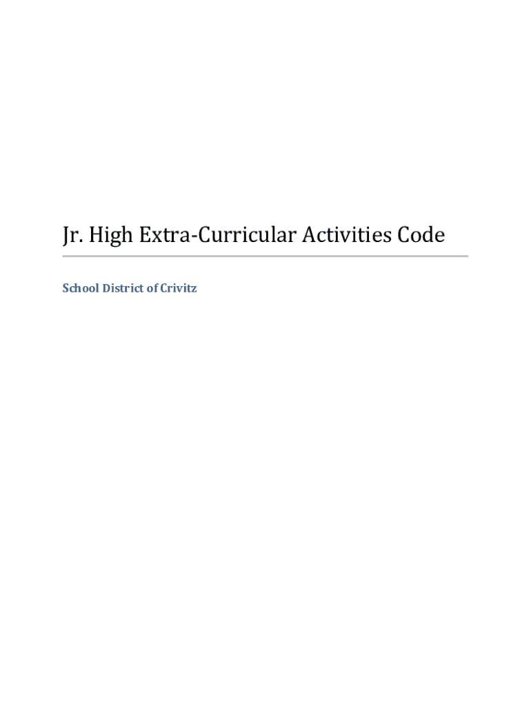 Jr. High ExtraCurricular Activities Code School District of CrivitzPhilosophyThe Activity School District believes that a program of activities outside the school curriculum is a valuable enhancement