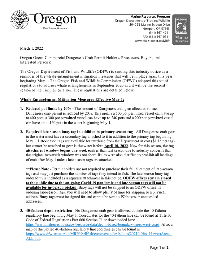 Oregon Kate Brown, Governor Marine Resources Program Oregon Department of Fish and Wildlife 2040 SE Marine Science Drive Newport, OR 97365 (541) 8674741 FAX (541) 8670311 www.dfw.state.or.us/MRPMarch