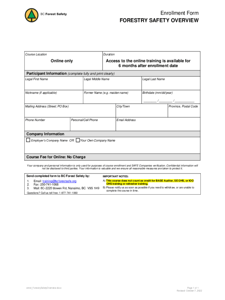 FORESTRY SAFETY OVERVIEWCourse LocationDurationOnline onlyAccess to the online training is available for