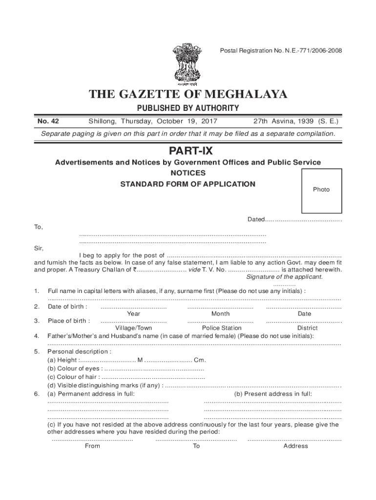 Fill out your form gazette of meghalaya online with pdfFiller!