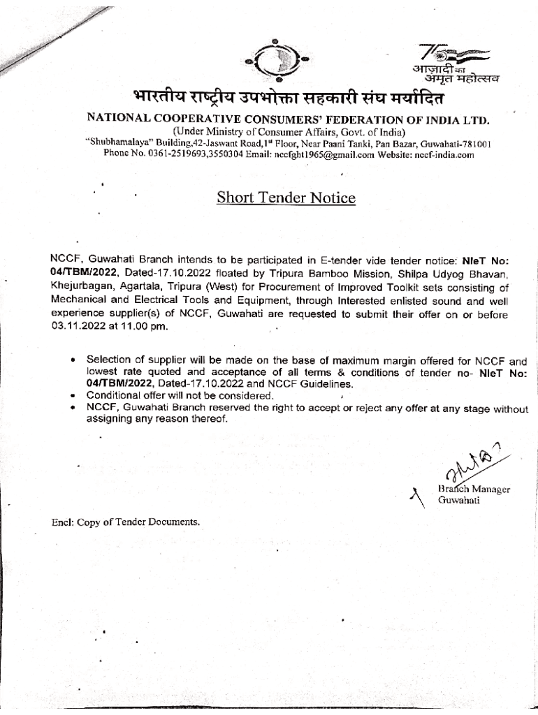 and Electrical Tools and Equipment. Diet No: 04/TBM/2022Tripura Bamboo Mission