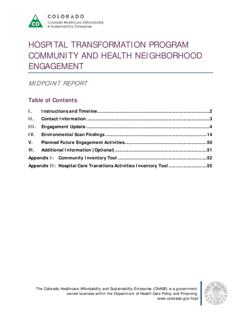 HOSPITAL TRANSFORMATION PROGRAM COMMUNITY AND HEALTH NEIGHBORHOOD ENGAGEMENT MIDPOINT REPORT Table of Contents I. Instructions and Timeline..................................................................................2II.