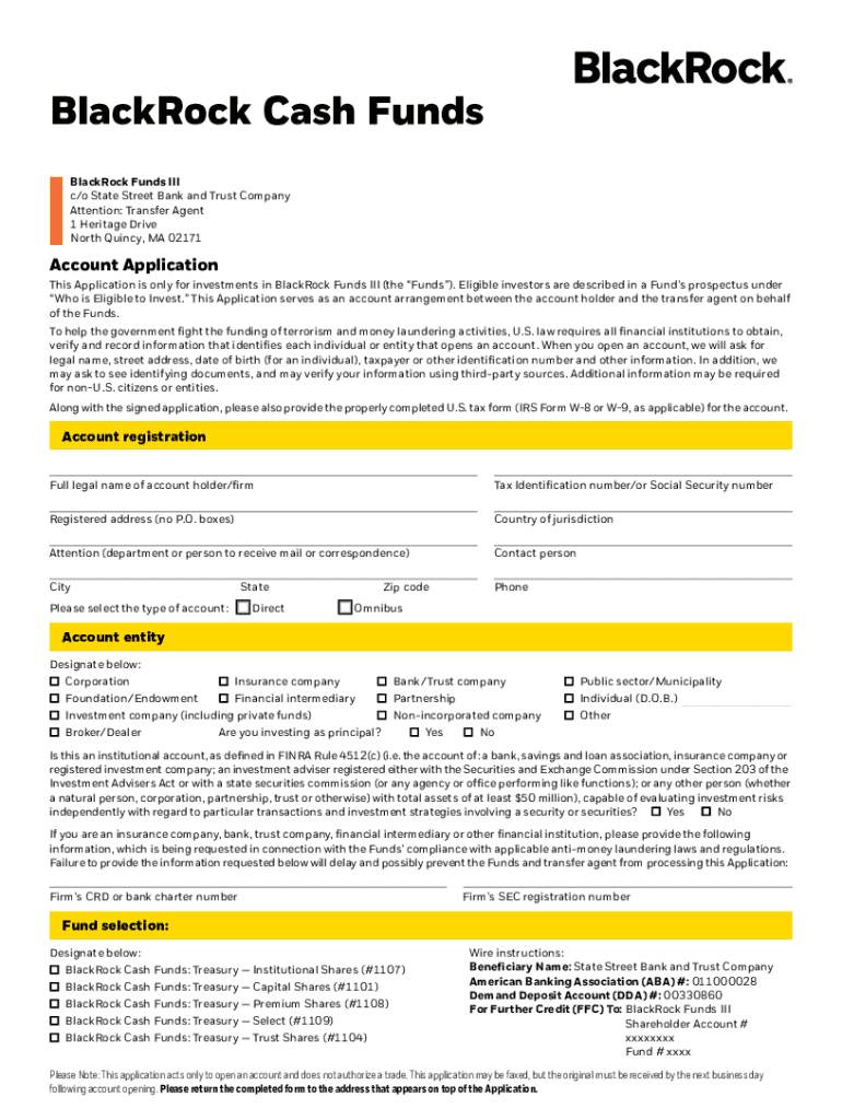 Get the free Account ApplicationBlackRock Cash Funds