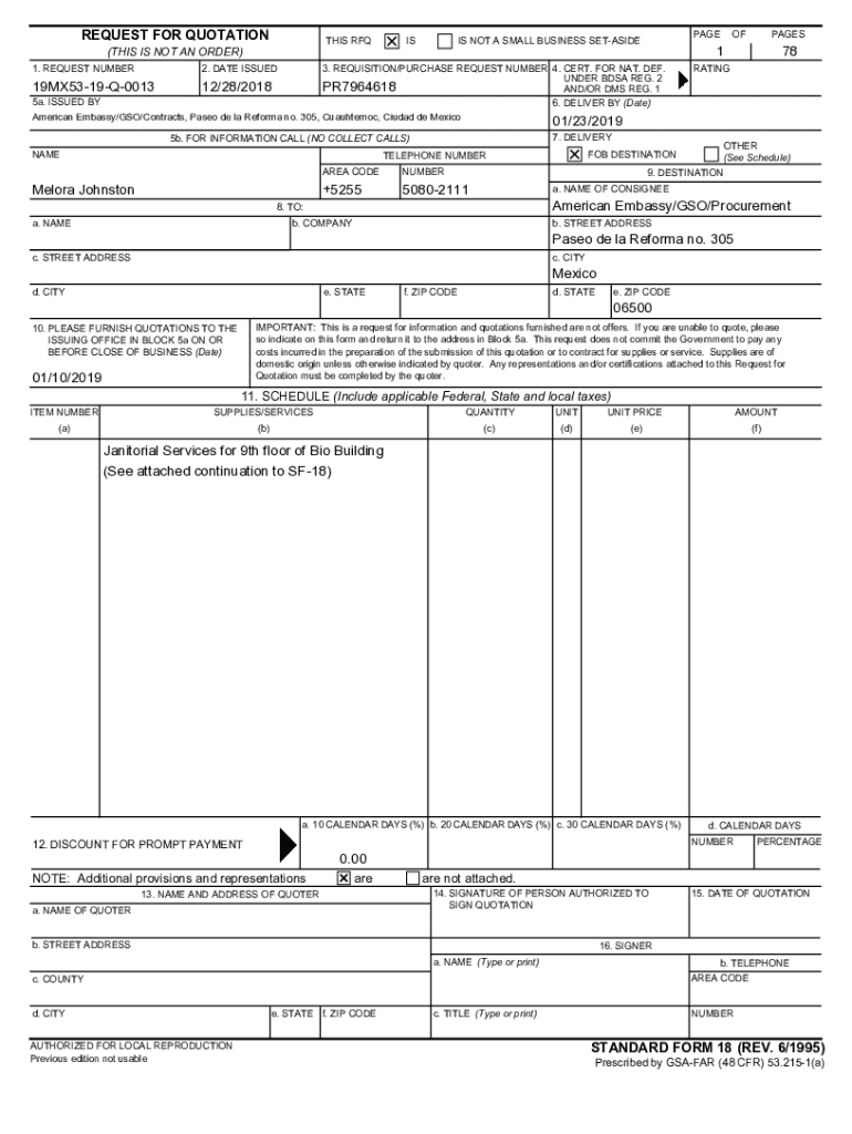 REQUEST FOR QUOTATIONS RFQ(THIS IS NOT AN ORDER)1. REQUEST NUMBERISPAGEIS NOT A SMALL BUSINESS SETASIDE2. DATE ISSUED3. REQUISITION/PURCHASE REQUEST NUMBER 4. CERT. FOR NAT. DEF. UNDER BSA REG. 2