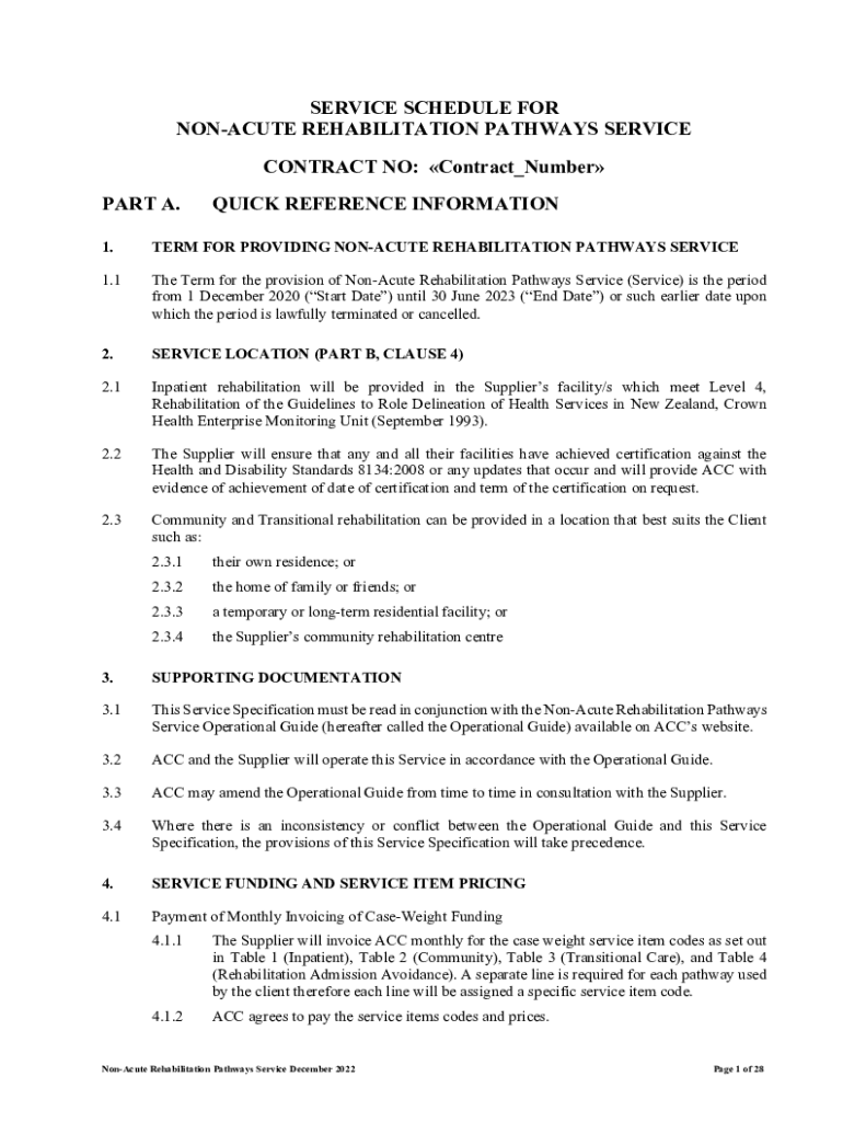 SERVICE SCHEDULE FOR ACUTE REHABILITATION PATHWAYS SERVICE CONTRACT NO: Contract_Number PART A.QUICK REFERENCE INFORMATION1.TERM FOR PROVIDING ACUTE REHABILITATION PATHWAYS SERVICE1.1The Term for