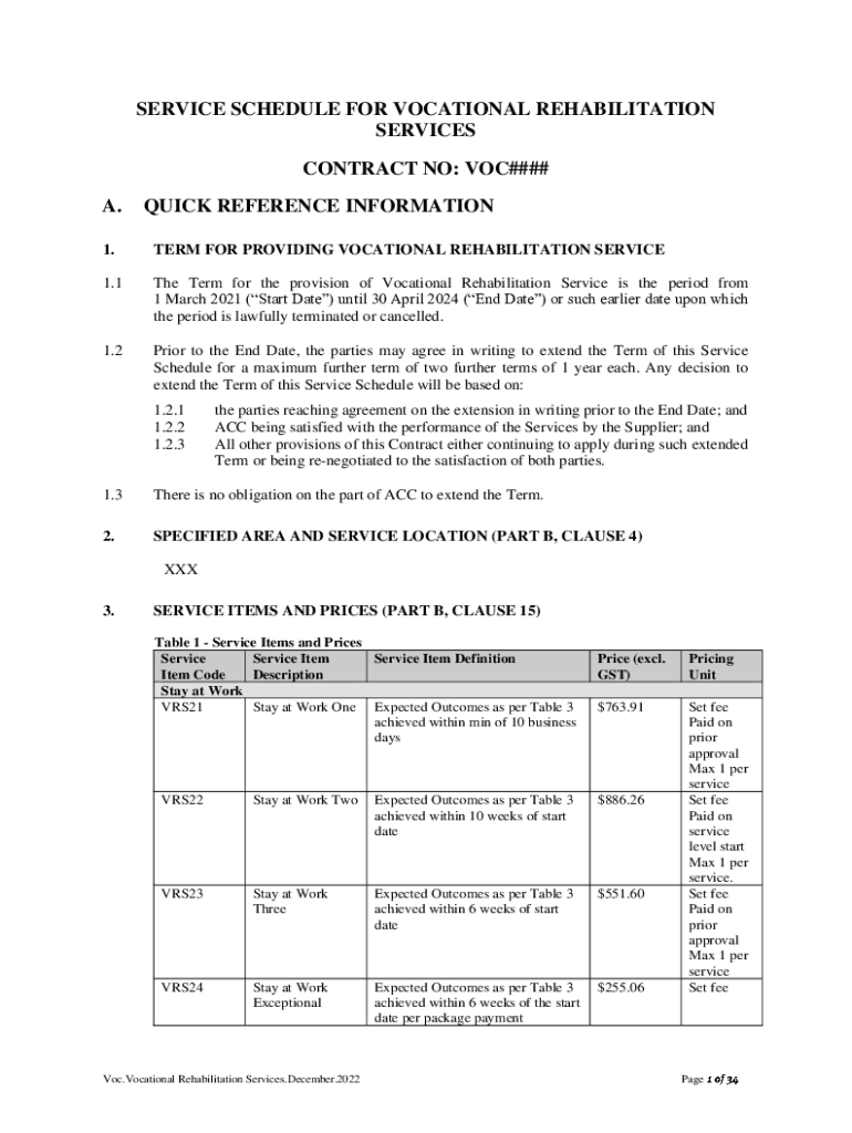 Get the free Service Schedule for Vocational Rehabilitation Services - ACC