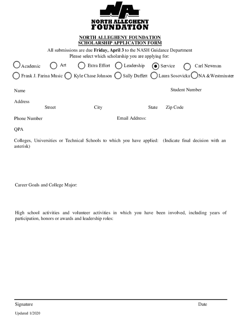 Get the free NA Foundation / Scholarships - North Allegheny School District