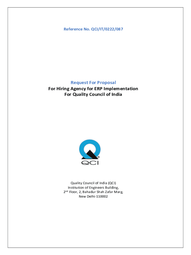 Reference No. PCI/IT/0222/087Request For Proposal For Hiring Agency for ERP Implementation For Quality Council of Inequality Council of India (PCI) Institution of Engineers Building, ND 2 Floor, 2,